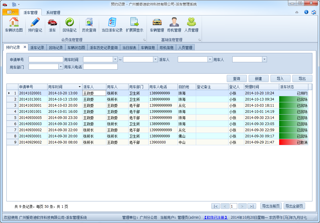 預(yù)約、派車、回場(chǎng)過(guò)程管理